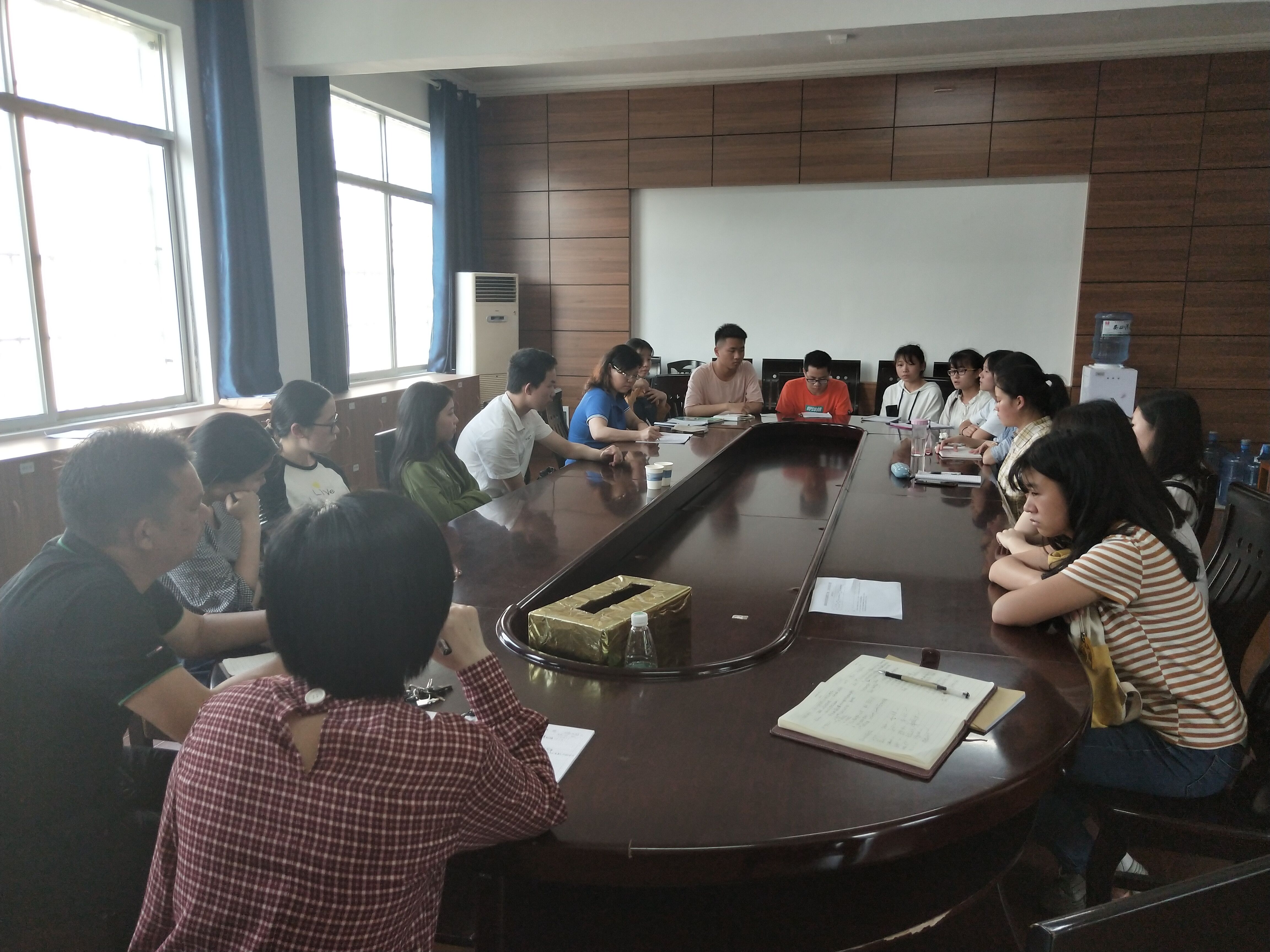 (通讯员:郭旭明)49日下午,英语系在博雅楼202办公室召开大一学生代表座谈会。外国语学院党总支书记雷树彬、副院长何丽萍博士、英语系正、副主任郭旭明和谭浩亮老师以及辅导员王素芳老师出席会议并与学生现场交流。
