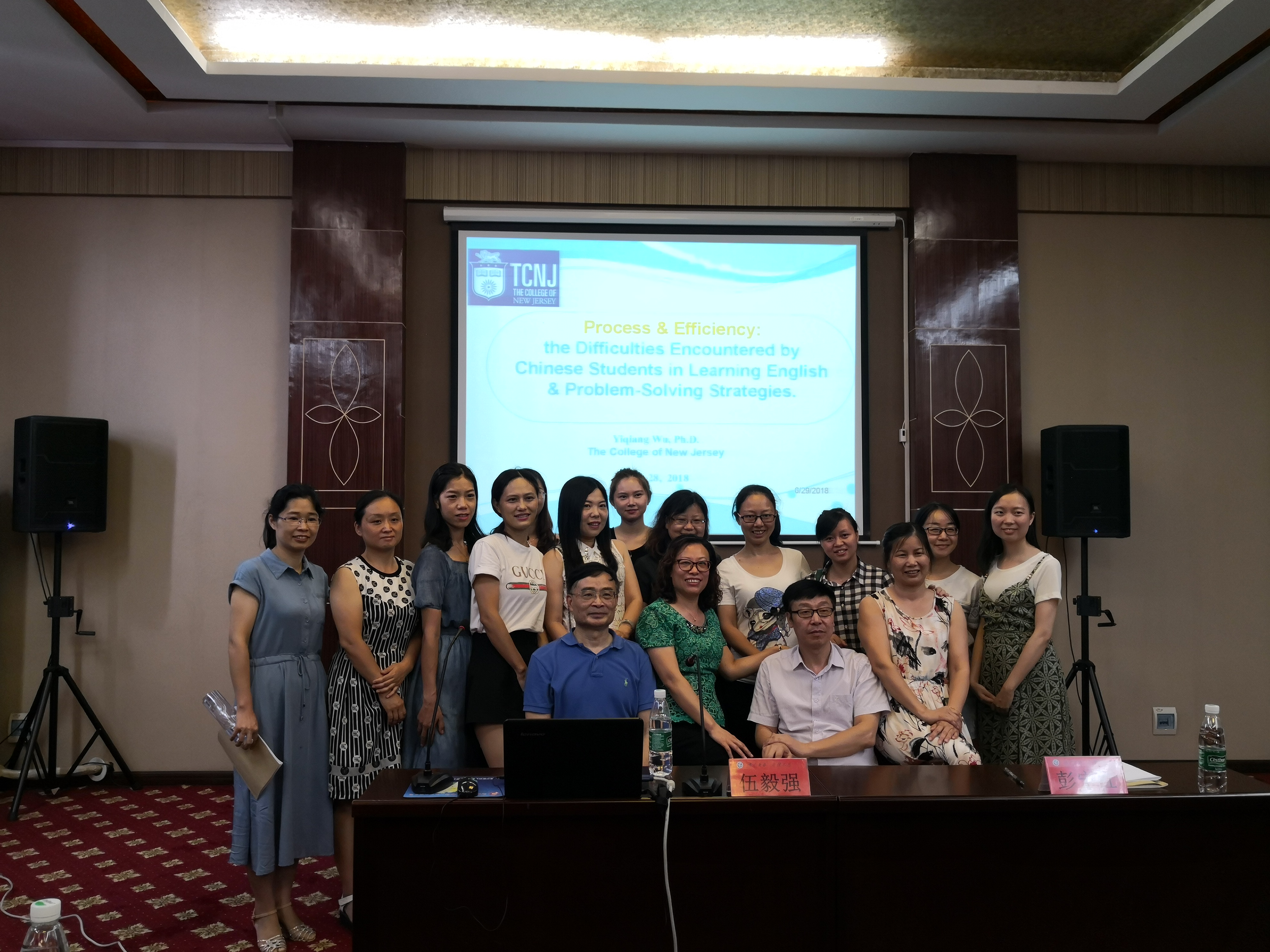 629日下午,美国新泽西学院教授伍毅强在行政楼八楼三会议室作了题为“Process and Efficiency: the Difficulties Encountered by Chinese Students in Learning English and Problem-solving Strategies”的全英文讲座。外国语学院副院长彭宁红主持会议,外国语学院英语教师、部分英语专业大三学生聆听了讲座。