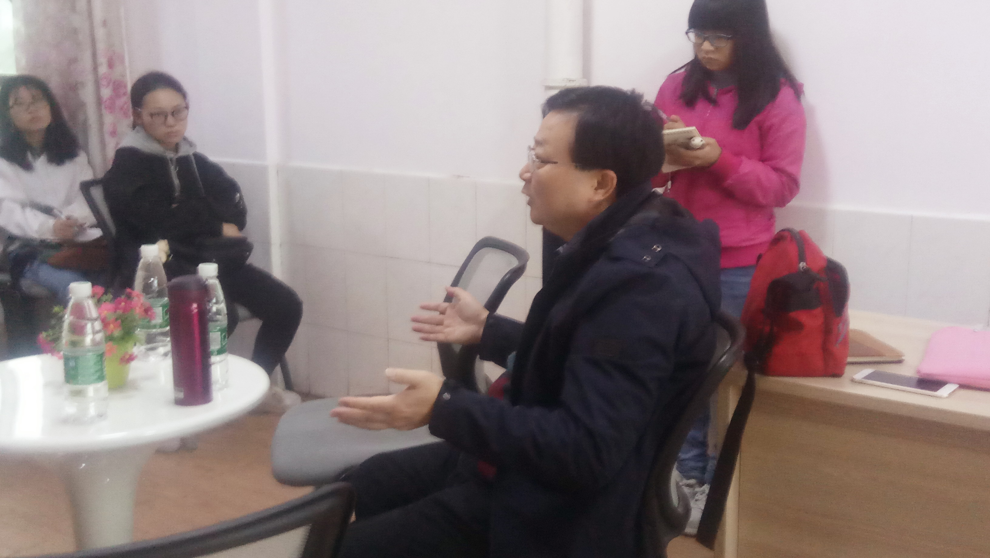 石永生简要的介绍了深圳地区老师报名时间、招聘的方式以及备考资料等信息。对于招聘的形式,石永生教授进行了详细的讲解。招聘的内容主要由面试和笔试组成,其中面试主要就一些特殊情景进行提问,但大部分还是以模拟讲课的形式为主;笔试则主要围绕教育学、心理学等进行出题,题型多为选择题、填空题和辩论题。石永生还与同学们就深圳大学研究生报考、教师面试礼仪、大学期间素质提升等话题进行了热烈的讨论,并给同学们提出了一些有效的建议:一、在招聘或工作中不要太张扬个性,要懂得谦卑有礼;二、要在平时生活中提升自己的实力,努力做好学好;三、注意细节,如在平时的生活中要多加练习写字等。