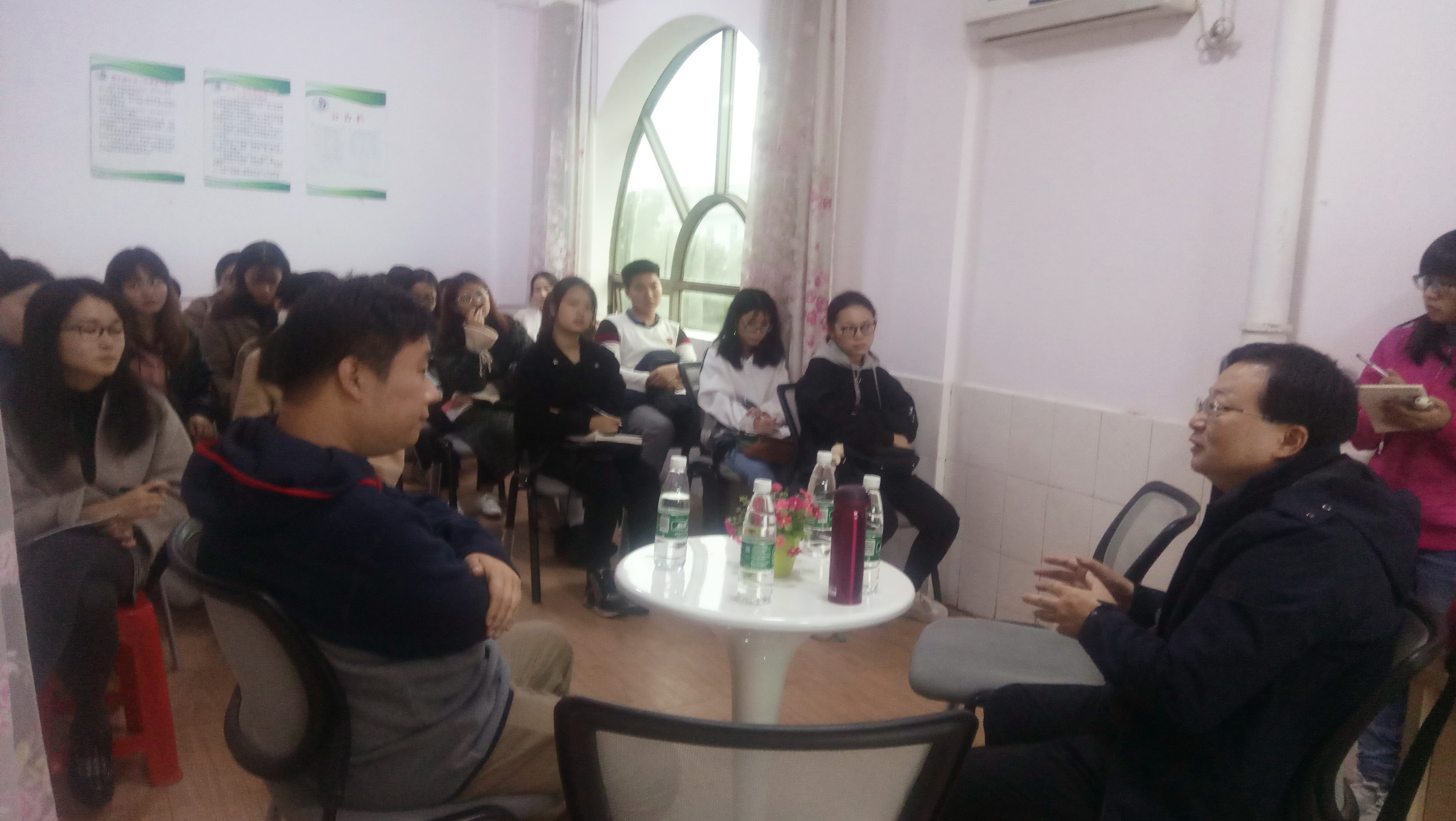 本网讯 (通讯员:叶琴、陈小峰)为使学生们更好地了解深圳教师招考的最新形势,1116日下午,外国语学院邀请深圳教科院正教授级教研员、深圳大学硕士生导师石永生在菁菁书院“心晴”团体辅导室开展以“树立信心、做足准备,主动投身特区教育”为主题的座谈会,该院党总支副书记王瑛主持。