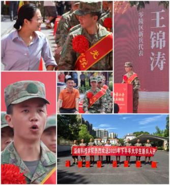 在本年度秋季征兵中,经过严格选拔,我校共有8名政治坚定、学业优良、身体过硬的优秀学生光荣入伍,充分展现了湘科院学子崇高的家国情怀与时代担当。欢送仪式上,我校音乐与舞蹈学院应届毕业生王锦涛同学作为新兵代表发言,深情表达了对军旅生活的向往与报效祖国的决心,立下了“刻苦训练、建功军营”的铮铮誓言。