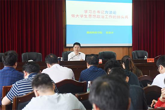 就如何学习贯彻落实习近平新时代中国特色社会主义思想,程智开引用经典名言和大量事例论证,从以历史眼光确定发展方向、加强调查研究、坚持系统思维、坚持人本立场、强化理论思维、培养创新思维、强化底线思维、坚持问题导向、坚持钉钉子精神、培养“三分法”思维等十个方面,对切实做好学生思想政治工作提出了具体细致的要求。