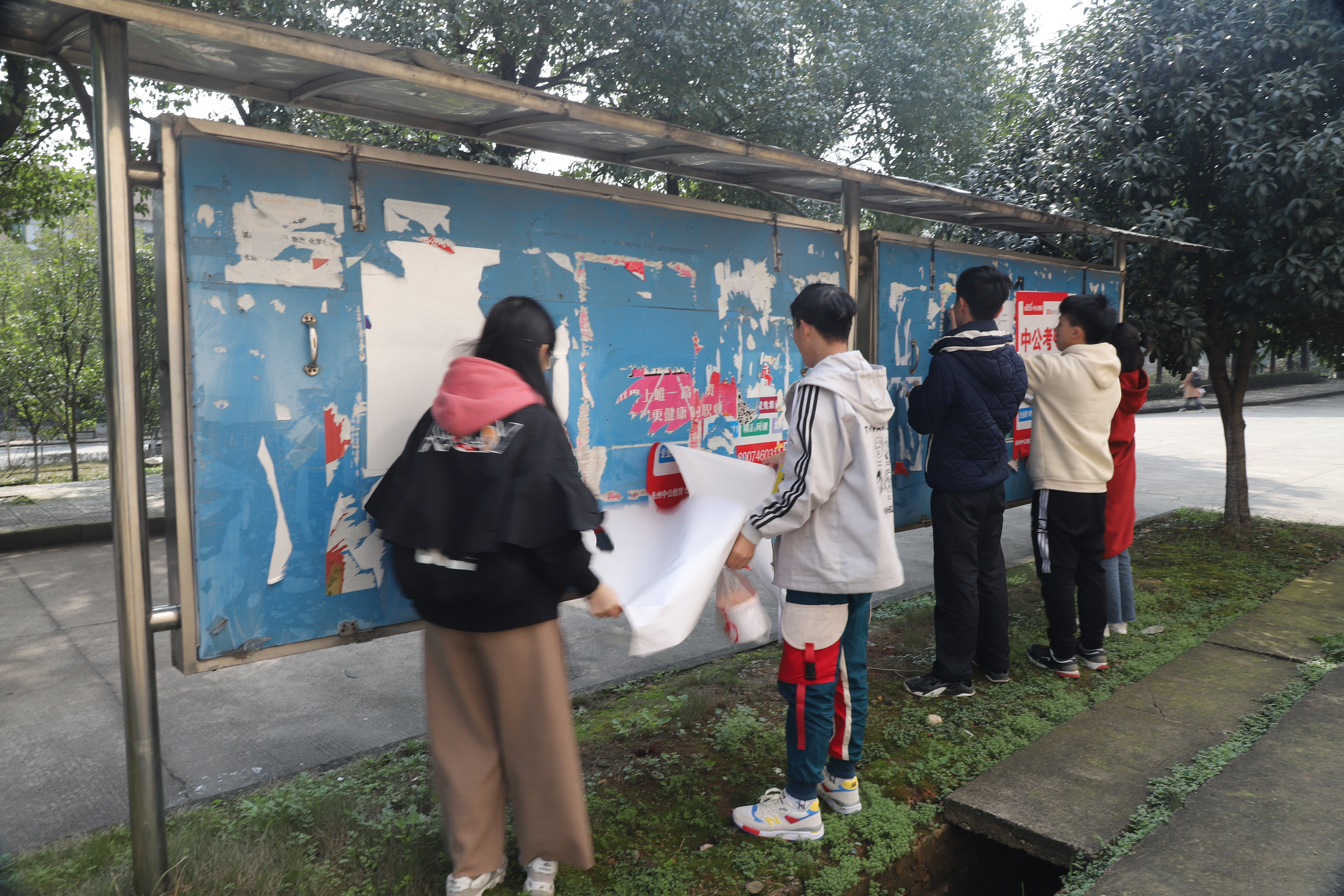 为弘扬雷锋精神,美化校园,3月10日,学工部组织学生干部开展了以清除宿舍区域的“牛皮癣”为主题的义务劳动,经过一天的努力,宿舍区域的各种牛皮癣已经被清除干净。