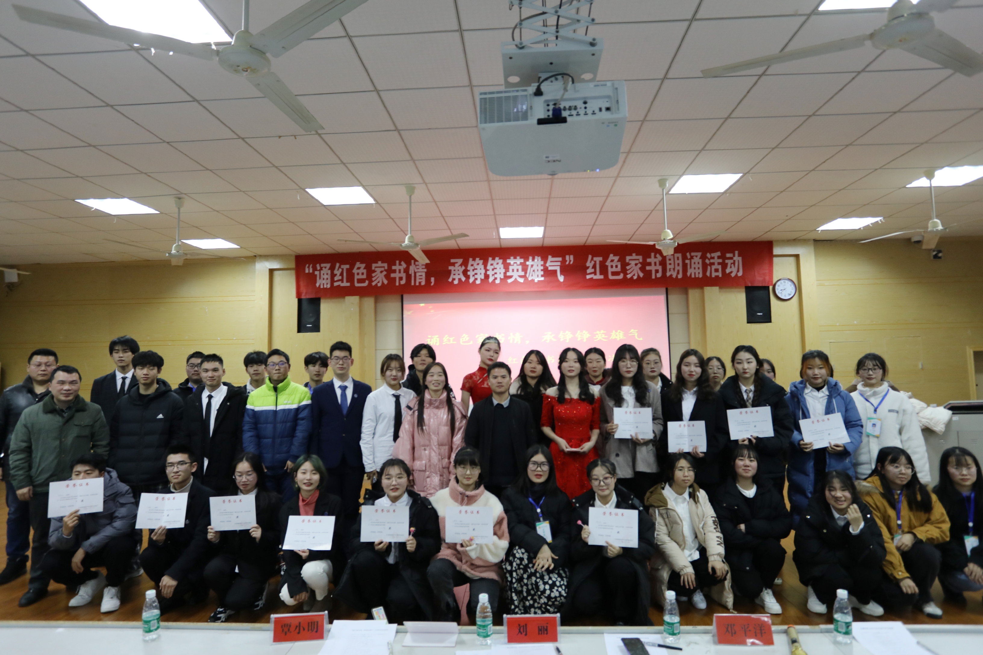 本网讯(记者袁海山)为深入开展爱国主义教育,积极弘扬红色文化、传承红色基因,12月21日晚,传媒学院在致远楼701举行“诵红色家书情,承铮铮英雄气”红色家书朗诵比赛。学院学工办副主任邓平洋,辅导员老师覃小明、刘丽及数字媒体技术系赵国栋老师担任评委,全体大一学生共同观看此次比赛。