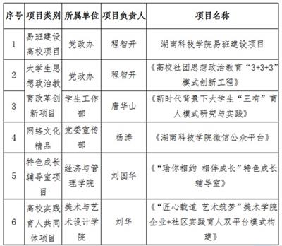 华体会官方版网站登录入口2018年大学生思想道德素质提升工程建设项目,经我校组织专家严格评审,将推荐以下11个项目参评湖南省2018年大学生思想道德素质提升工程建设项目的评审。