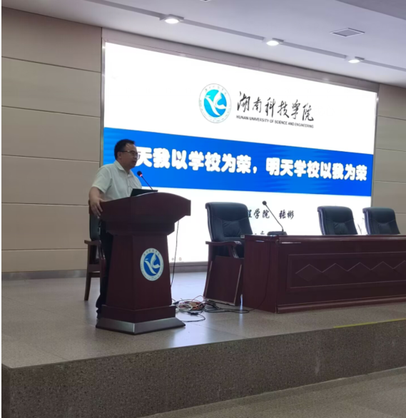 张彬副院长在讲话中代表学院对来自全省各地的500多名2023级新生表示热烈的欢迎和诚挚的祝贺。他指出,湘科院有优越的办学基础、高水平的教师队伍和优美的校园环境,将为同学们成长成才提供有力保障。张彬还介绍了信息工程学院办学以来取得的可喜成绩,并向新生们提出三点希望和要求:一是谋,有格局有信念重提高;二是静,忍孤独打基础重应用;三是动,定目标点突破准发力,努力成为民族复兴重任的栋梁之才,为中华民族伟大复兴做出湘科院人应有的贡献。