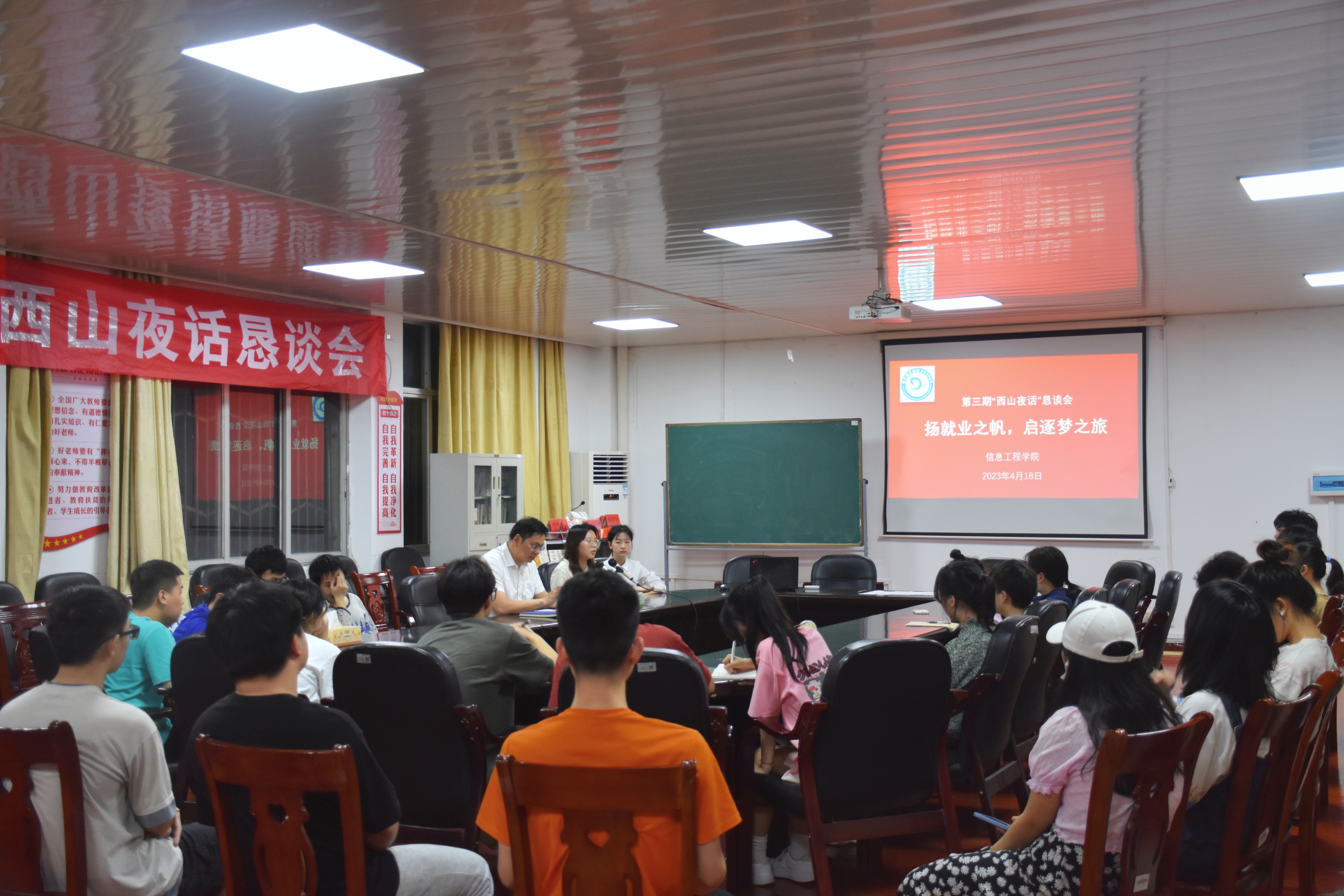 本网讯(通讯员 李双 刘兵兵)4月18日,学院举办第三期“西山夜话”恳谈会,学院党总支书记刘国华担任主讲嘉宾,辅导员向慧蓉、学院大三大四60余名同学参加会议,师生们围绕就业发展的主题进行了热烈的讨论交流。