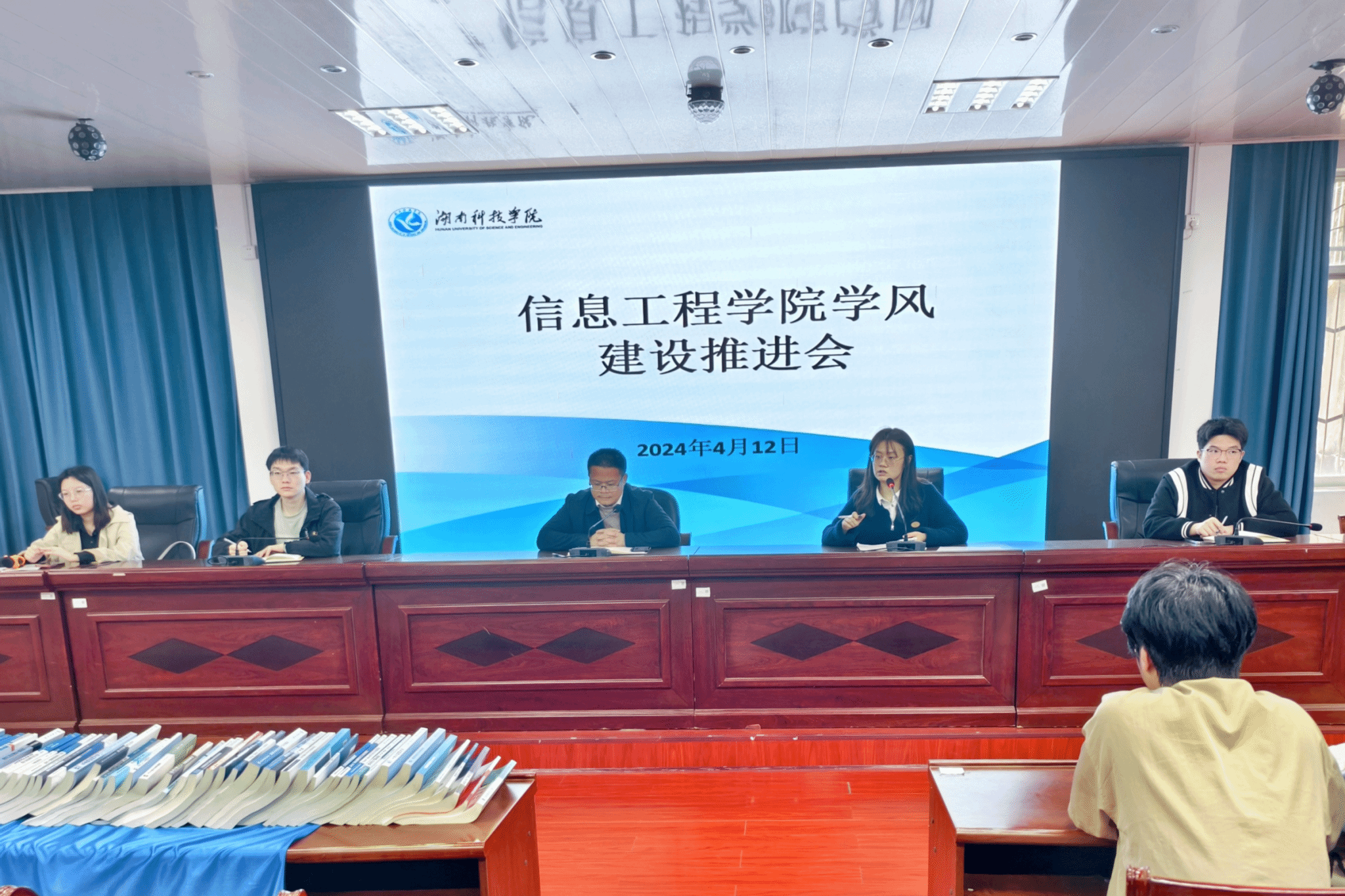 本网讯(通讯员刘家乐 陈星明)4月12日,学院召开学风建设推进会,强化学纪管理,塑造优秀学风。院党总支副书记夏汉伟,学工办主任唐鹤轩、各年级辅导员、各班班长和学习委员参加会议。