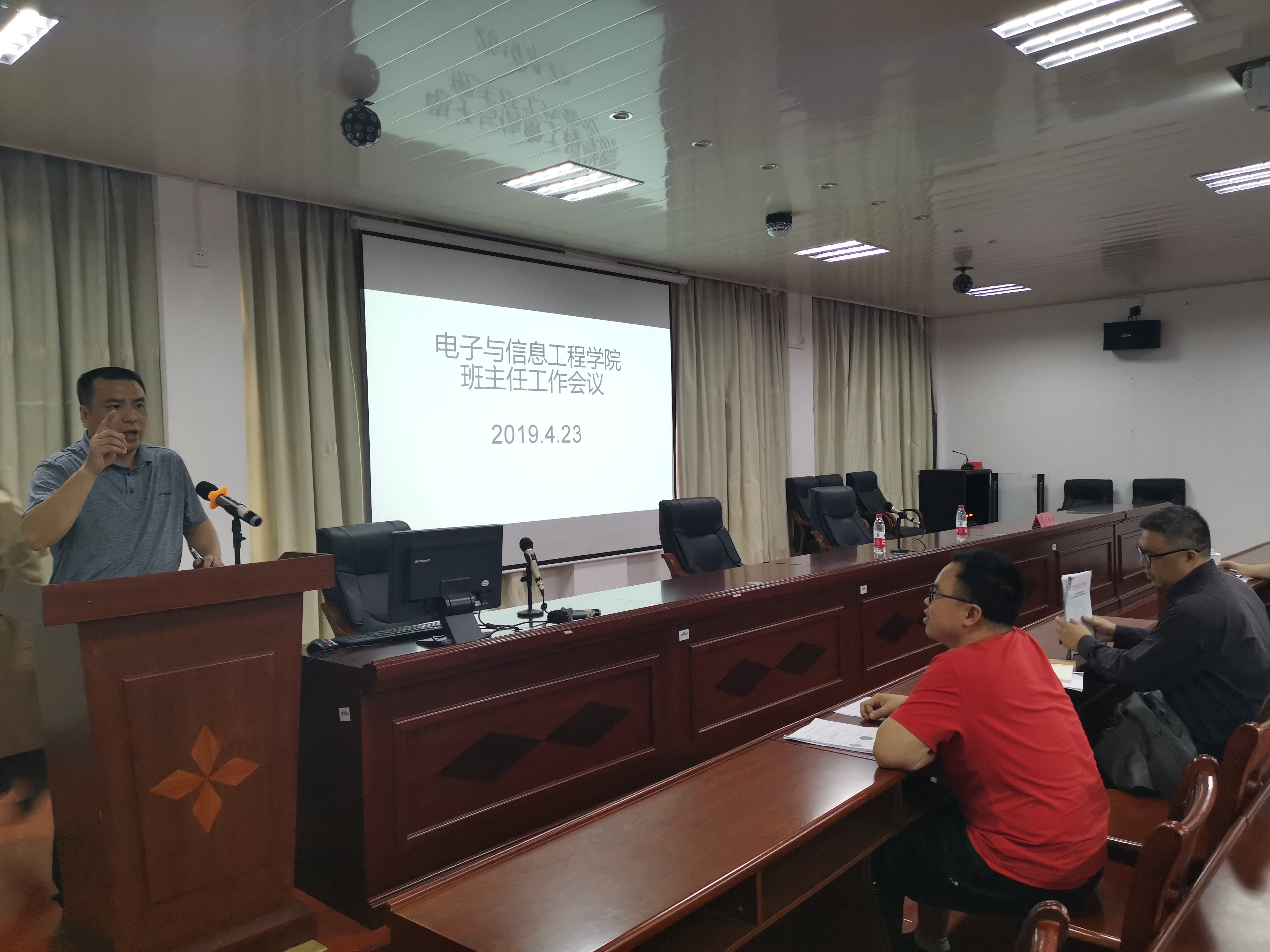 为持续推进“三学会、三争先,做‘三有’好青年”主题教育活动,加强队伍建设,我院于4月23日下午在知行楼107召开以“强化学风引领,加强安全教育”为主题的班主任工作会议。会议由党总支副书记李连胜主持,党总支书记陈泽顺、院长尹向东、副院长张彬出席会议,全体班主任和辅导员参加。