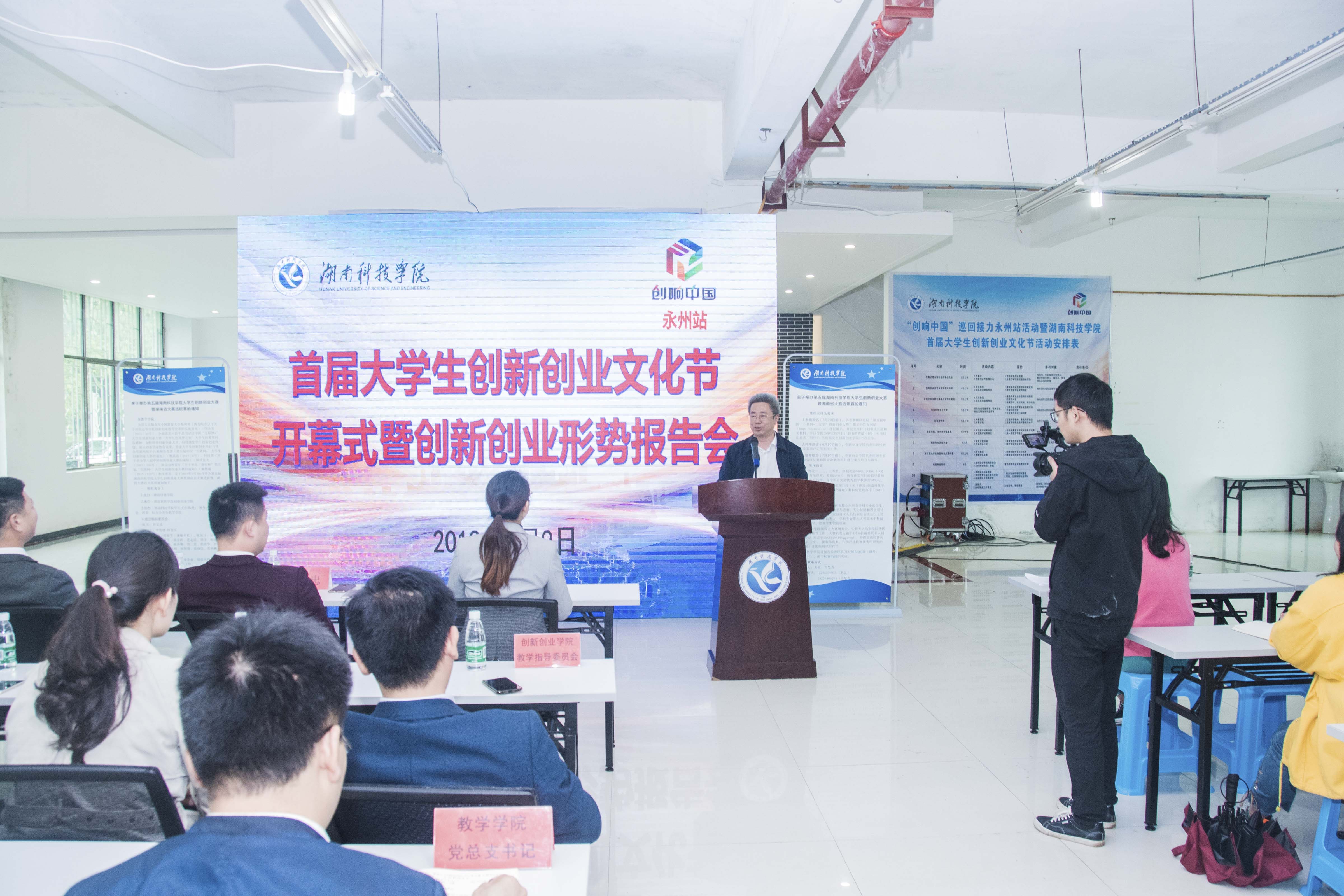 开幕式结束后,副校长李常健,教育部全国万名优秀创新创业导师、“互联网+”创业大赛国赛评委成忠,我校校外创业导师、北京米有校园科技有限公司创始人邹秀峰分别作创新创业形势报告。