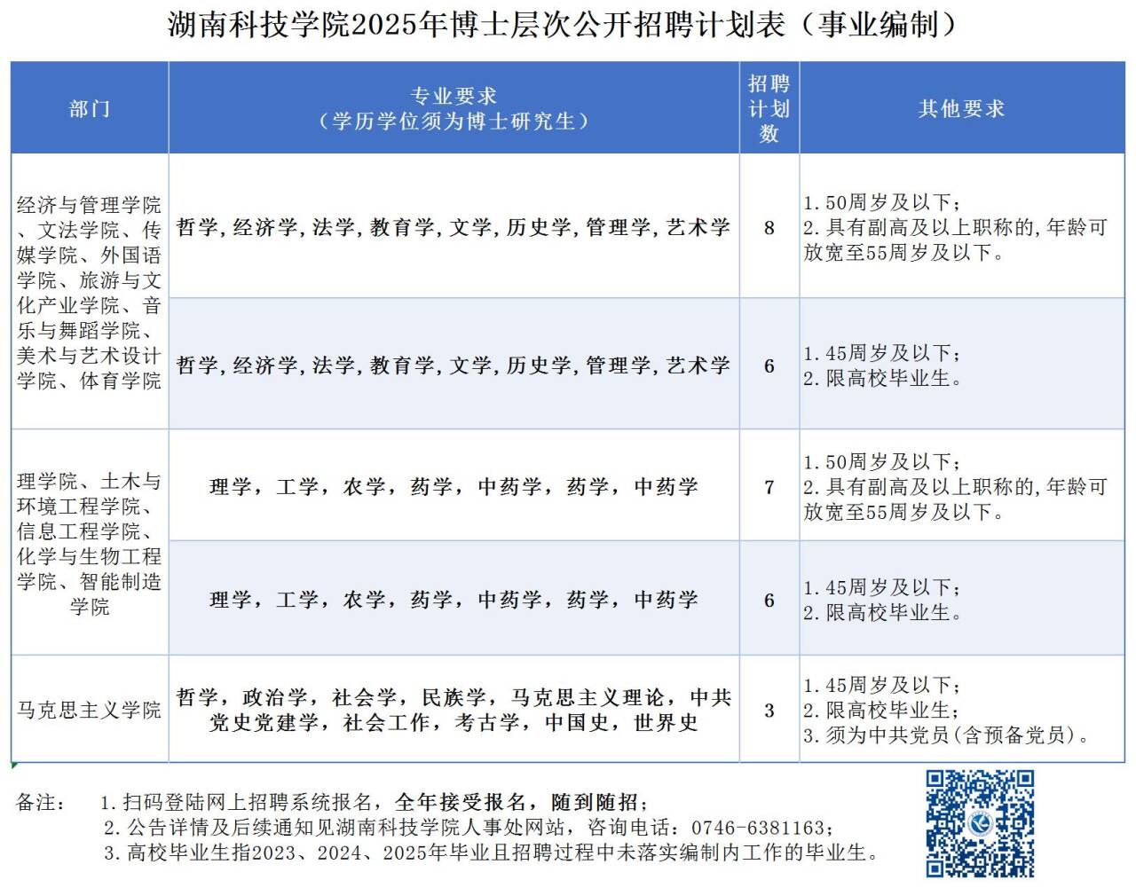 咨询电话:0746-6381163、0746-6381193(校人事处)