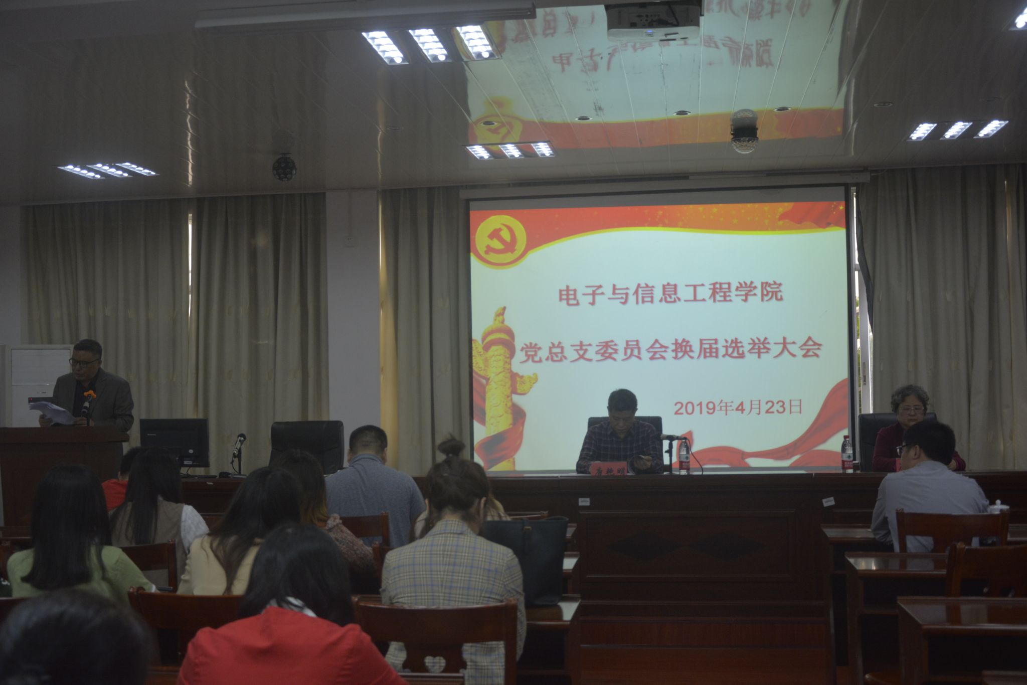 4月23日下午四点,我院于知行楼107召开党总支委员会换届选举大会。大会由党总支书记陈泽顺主持,校党委副书记唐艳明出席,电信院全体教师党员和学生党员代表共69人参加。