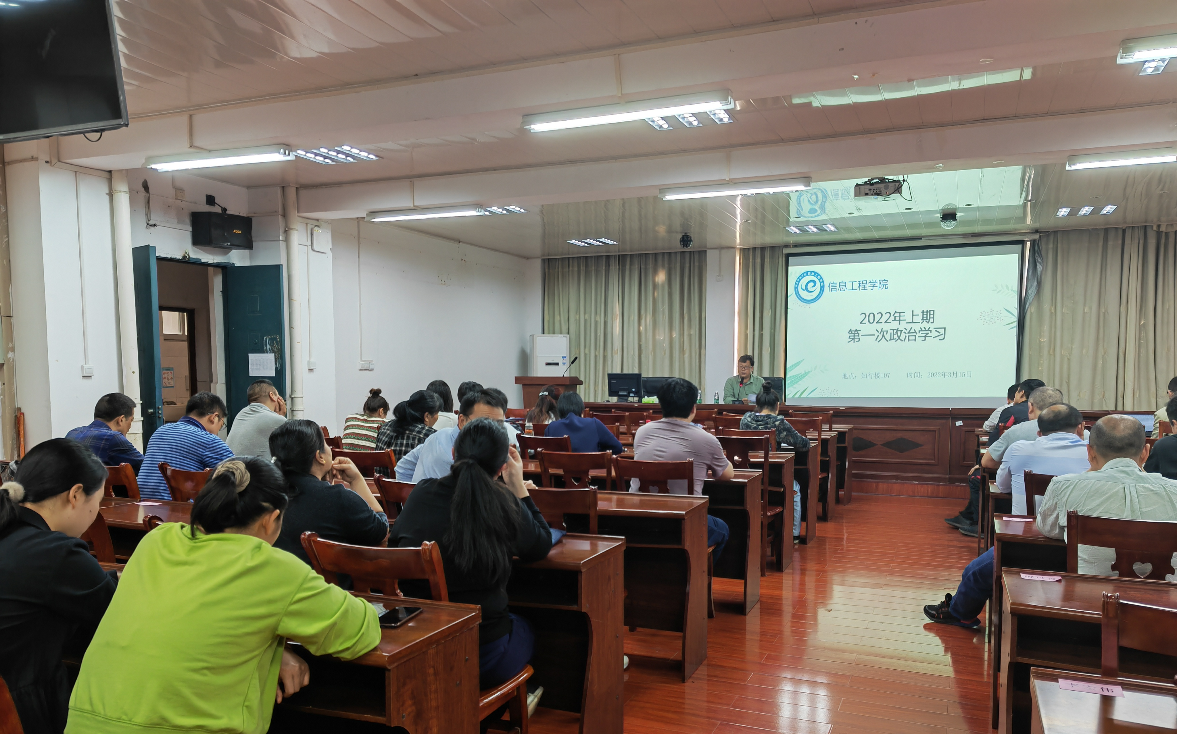 本网讯(通讯员 李娅菲)3月15日,根据学校学习安排,我院开展2022年上学期第一次政治理论学习,会议由党总支书记谢一民主持,全院教职工参加。