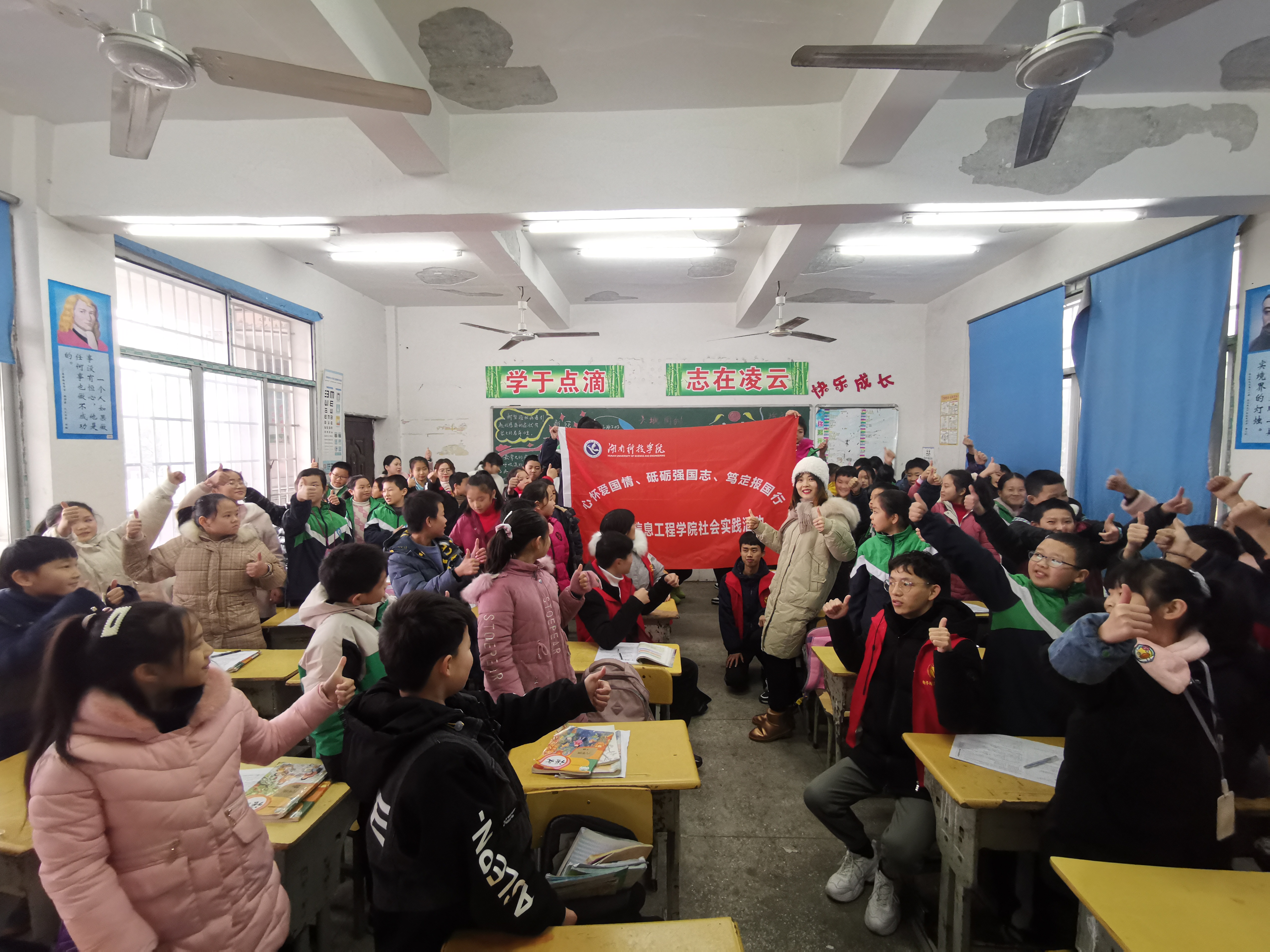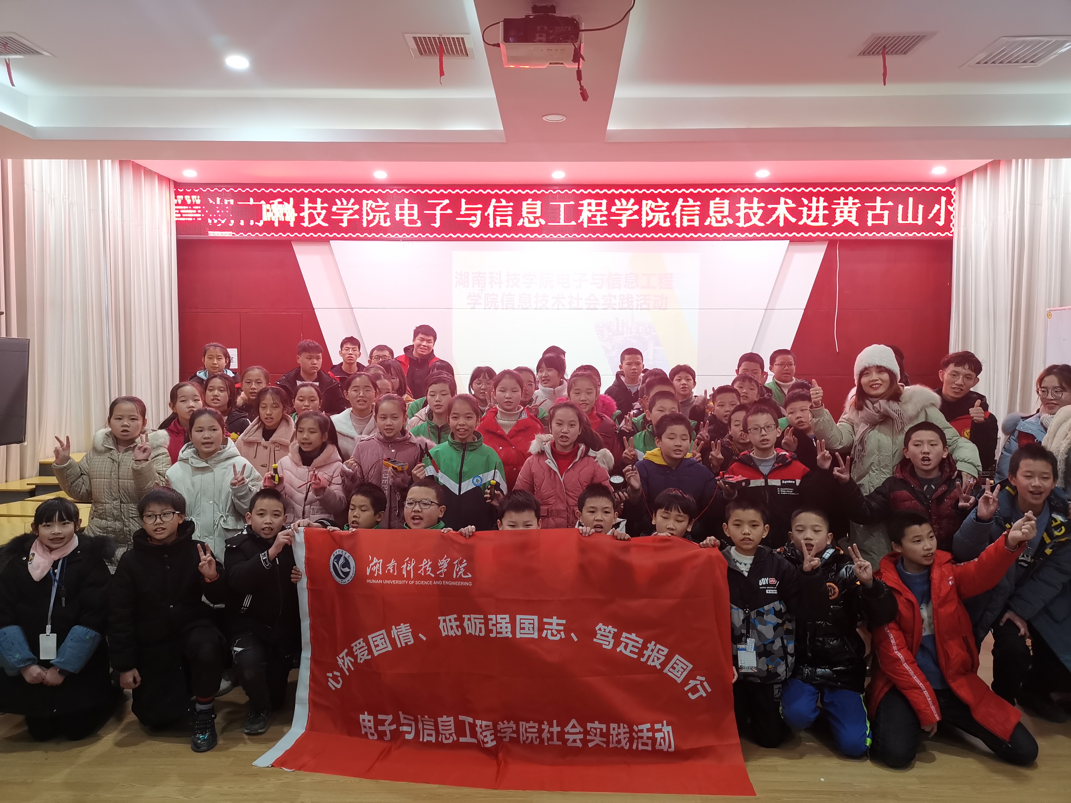 为了让小学生亲身感受信息技术带来的魅力,培养小学生了解、感知和探索信息技术的兴趣。2020年12月15日,华体会官方版网站登录入口电子与信息工程学院科普实践团队前往零陵区黄古山小学,开展以“心怀爱国情,砥砺强国志,笃定报国行”为主题的社会实践活动。
