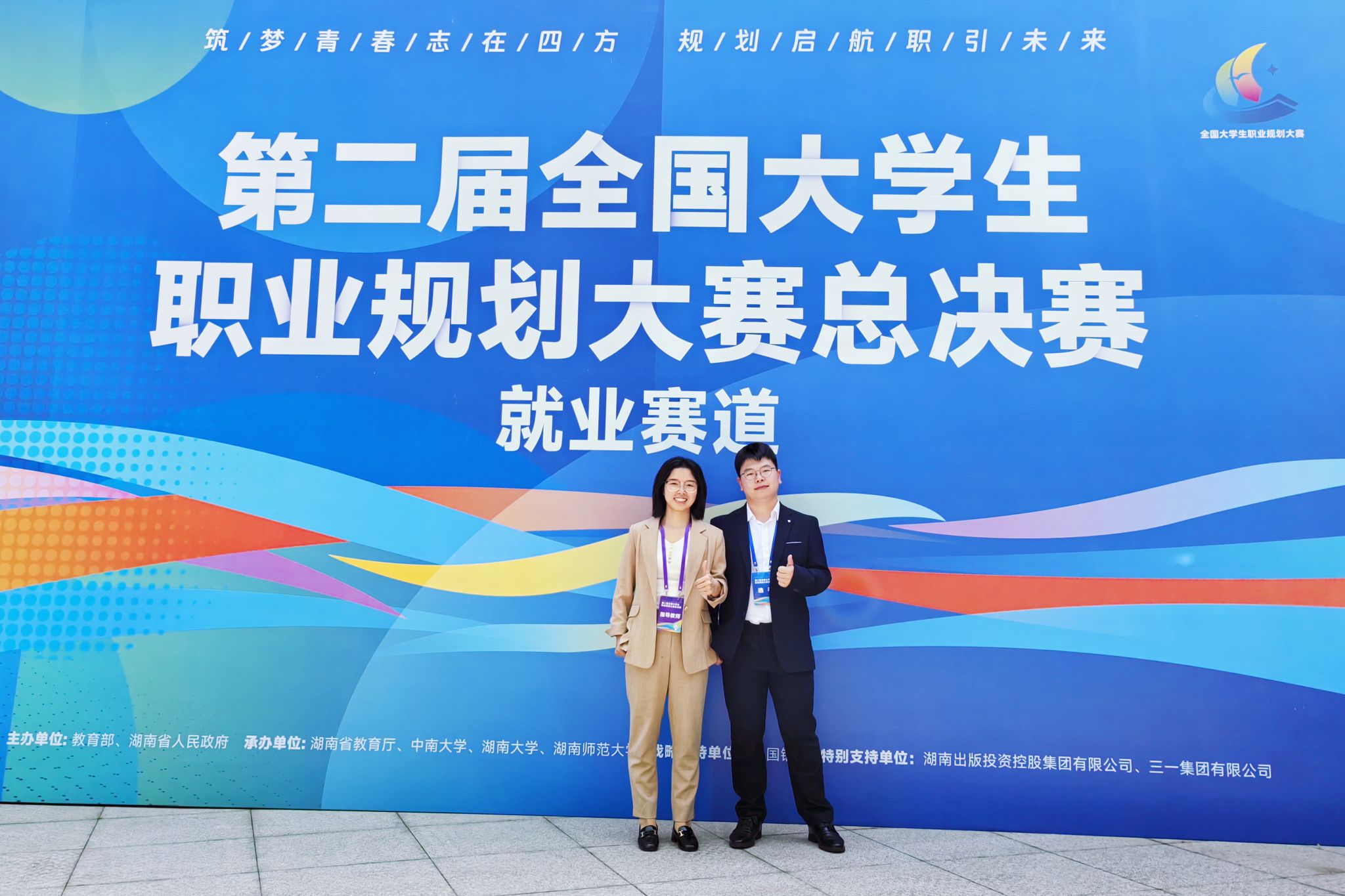 据悉,第二届全国大学生职业规划大赛由教育部、湖南省人民政府共同主办,设校、省、全国三级赛制。自2024年10月启动,覆盖全国2763所高校,1507万学子参赛,750人晋级总决赛,晋级比约为0.005%。在本次大赛中,我校组建了由职业发展专家、专业教师和行业导师构成的指导团队,通过专题培训、模拟实战、个性化辅导等方式,为参赛选手提供全方位指导。未来,学校将以此次大赛为契机,深化创新“价值引领、能力培养、职业发展”相融合的人才培养模式,培养更多“下得去、留得住、用得上、干得好”的高素质应用型人才,为服务区域经济社会发展提供有力人才支撑,推动实现毕业生更高质量就业。