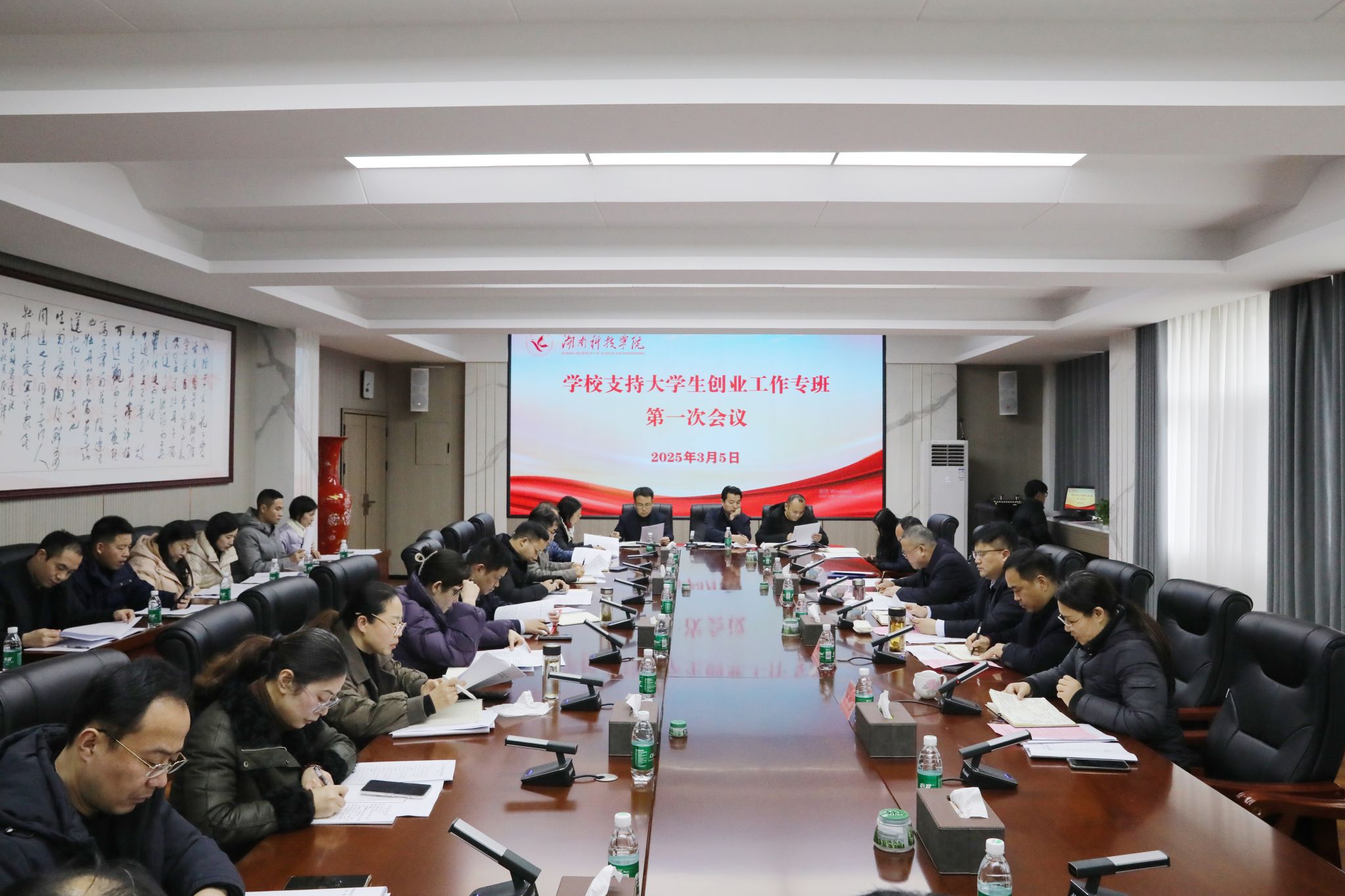 郑银芳传达了2月28日召开的湖南省“支持大学生创业工作高校专题推进会”会议精神。招生就业与创新创业指导处处长胡清华汇报了湖南省支持大学生创业“七个一”的背景和当前学校大学生创业存在的问题及下一步工作打算。专班成员就学校全面推进大学生创业工作实施方案进行讨论,并提出建设性意见。